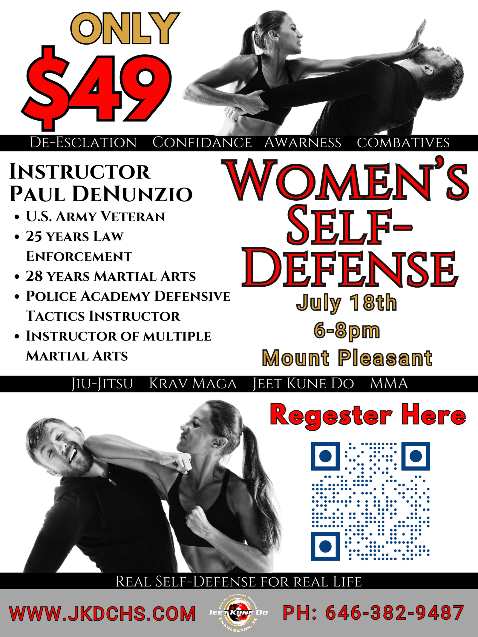 Private/Small Groups/Seminars Today’s society is riddled with violence directed at women. Assaults, Robbery’s, Sexual Attacks and Human Trafficking are the primary examples of violence targeting women. Are you prepared to protect yourself or a loved one when faced with physical violence? The Women’s Self-Defense class is designed to teach women how to survive a physical confrontation. The students will learn the concepts of Awareness, Avoidance and Attack. The course is a combination of classroom lecture, student/instructor discussion, and physical techniques. This specially designed class is a comprehensive study of the most reliable self-defense techniques and self-defense strategy. The Self-Defense techniques cover striking, clinching, defensive techniques (i.e., defense against chokes) ground fighting and weapons (defense and offense). Self-Defense strategy includes criminal behavior, pre-assault indicators, self-defense theory, victimology, mental preparedness, and defensive weapons considerations.